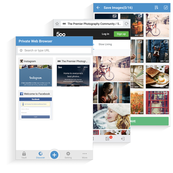 Hide photos & videos away from spying eyes and download all images and videos on web page.